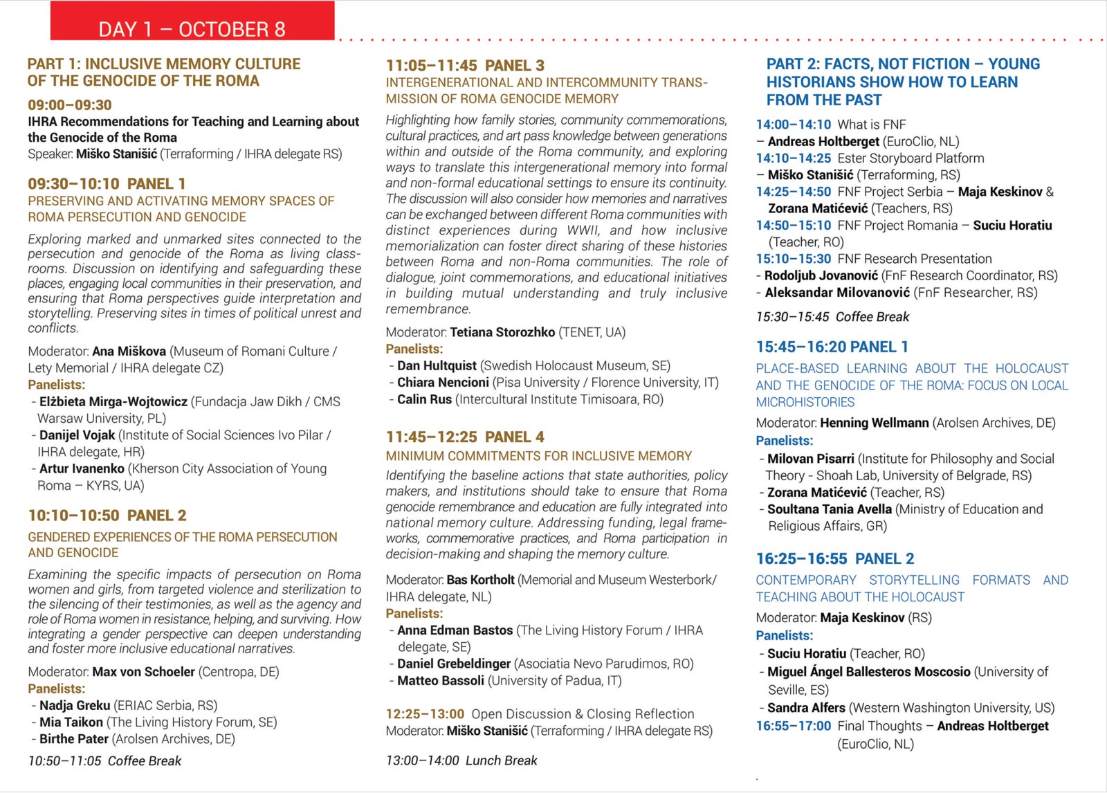 As part of the international project “Pasostar ando Prastape – Breaking into a Gallop: An International Incubator for Rethinking and Innovation in Education about the Genocide of the Roma during the Nazi Era,” we are organizing a series of international workshops. These workshops aim to explore new approaches to educating about and commemorating the persecution and genocide of the Roma and Sinti. The project supports the national implementation of the IHRA’s Recommendations on Teaching and Learning about the Persecution and Genocide of the Roma during the Nazi Era.