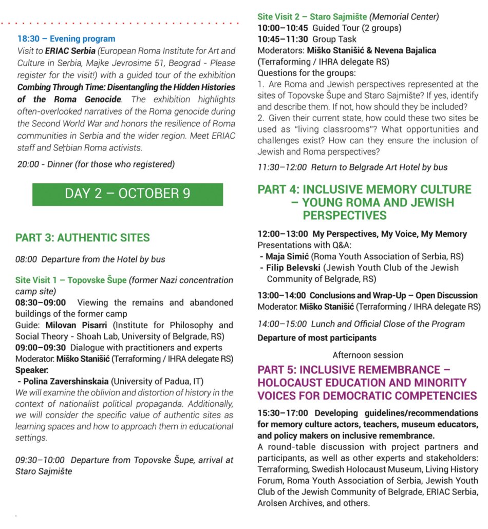 The third and final workshop in the series, Inclusive Education and Commemoration of the Genocide of the Roma, is held in Belgrade, on October 8-10.