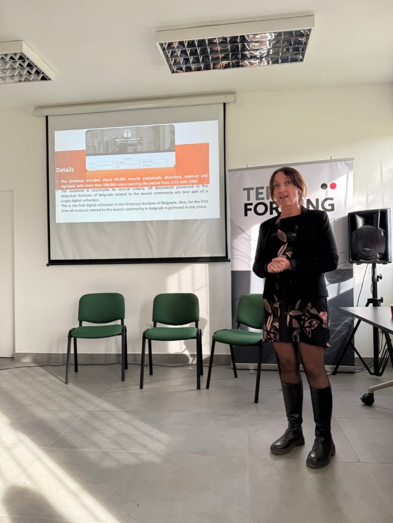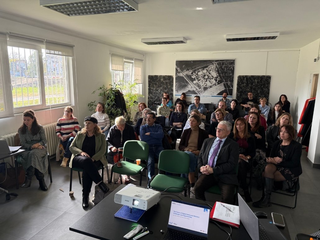 At the Memorial Center “Staro Sajmište” on October 22, attention turned to the evolving field of digital remembrance during the program “The Future of Digital Holocaust Memory: Challenges and Opportunities.” Speakers explored the rapidly changing landscape of archives, museums, and educational practices in digital environments. Case studies included the Jewish Digital Collection of the Historical Archive of Belgrade, presented by Jelena Nikolić and Tijana Kovčić, the Memorial Center “Staro Sajmište” digital database, presented by Dr. Milan Koljanin and Asja Drača, and the latest Terraforming’s educational tools: The Memory Box, Connecting Stories, and ABC on Antisemitism.